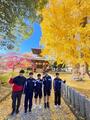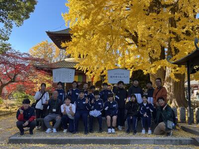 鑁阿寺の大銀杏の前で記念撮影しました。