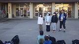 鳩にエサをあげました。足利のラジオであそ野学園が校外学習に来ていることを紹介してもらいました。