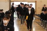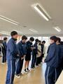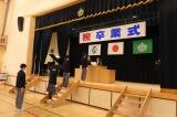 6校時に6年生が、9年生の卒業式練習の様子を見学しました。起立・礼などの所作、卒業証書をもらうときの返事など、9年生の練習の姿を、6年生は真剣なまなざしで見つめていました。